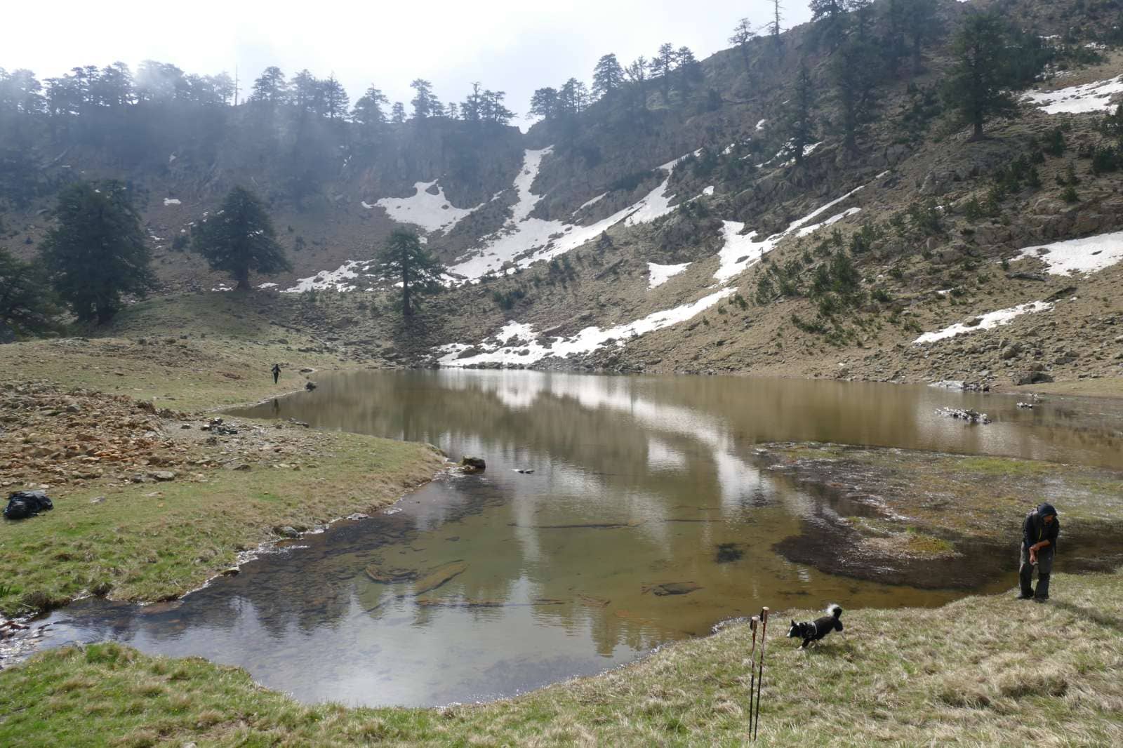 Κάνοντας ένα διάλλειμα και βγάζοντας τις απαραίτητες φωτογραφίες στην κορυφή, πήραμε την κατηφόρα για τις μικρές αλπικές λίμνες, οι οποίες ήταν ορατές από την κορυφή, όταν μας το επέτρεπε η ομίχλη που είχε εκείνο το πρωινό.