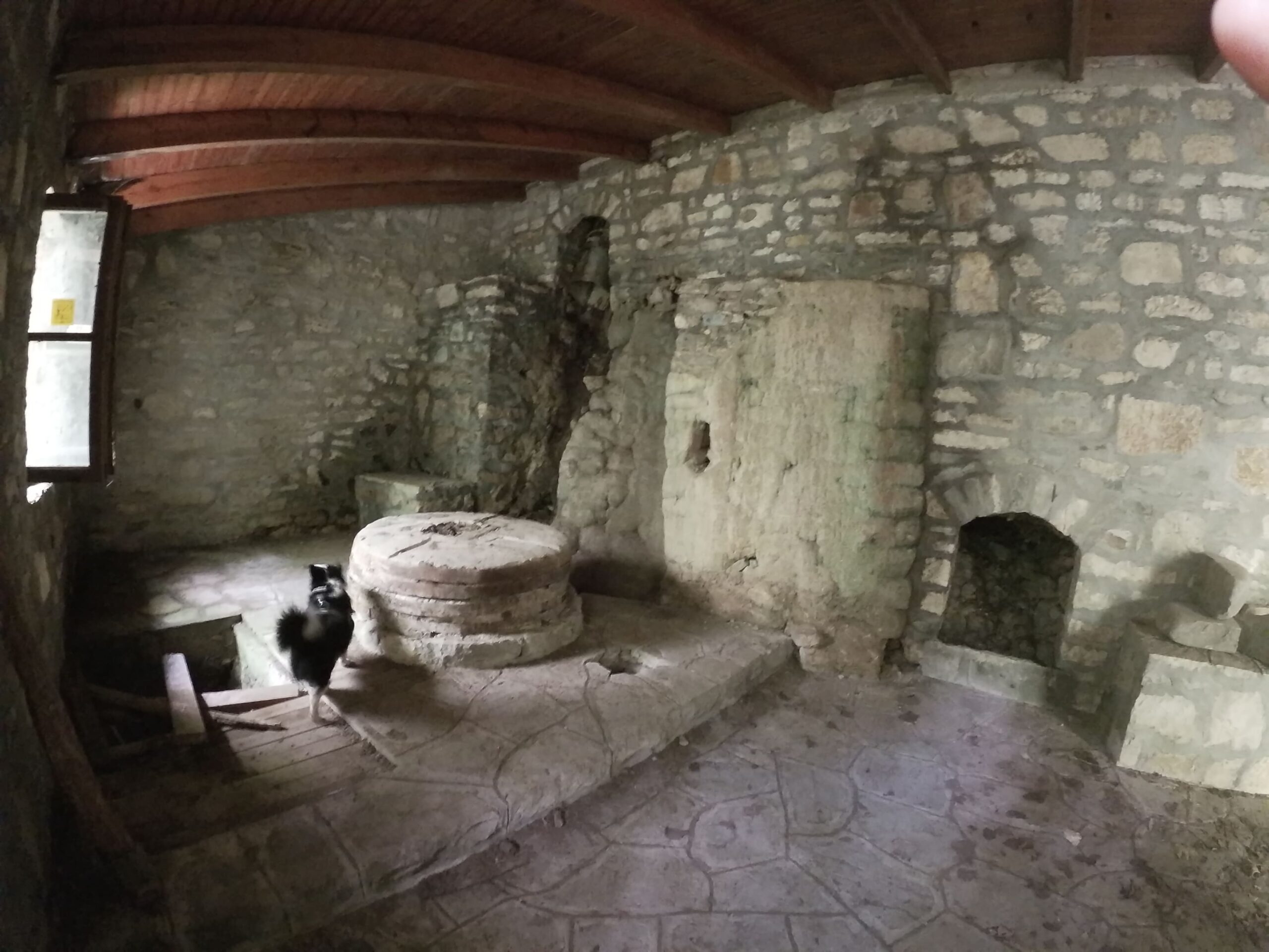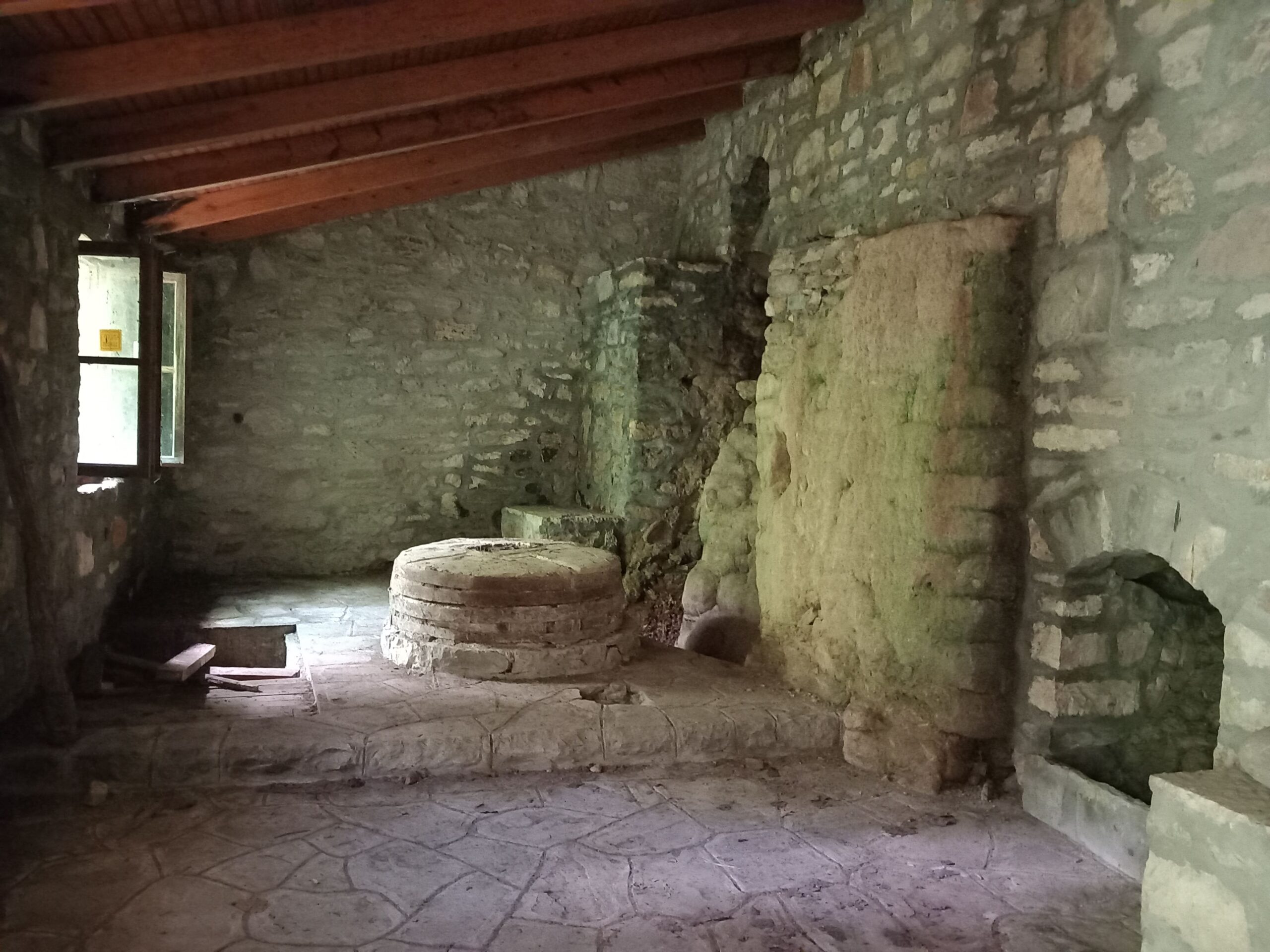 Έπειτα επιστρέφουμε στη διασταύρωση (39°29’46.57″ , 21°0’34.19″) και πεζοπορώντας μερικά μέτρα συναντούμε μια δεξαμενή νερού και ακολουθούμε αριστερή πορεία στο λιθόστρωτο μονοπάτι φθάνοντας στον παραδοσιακό νερόμυλο.