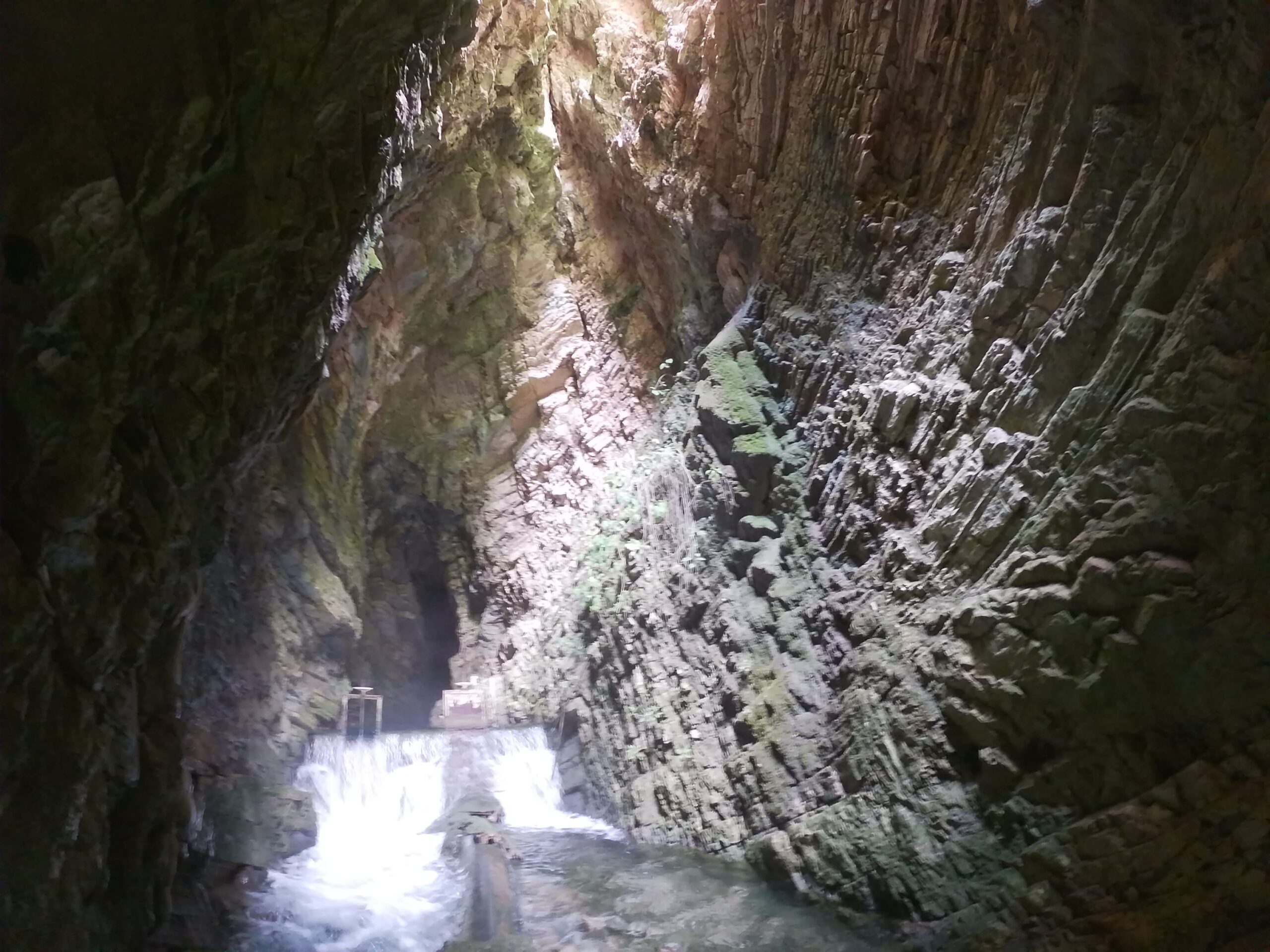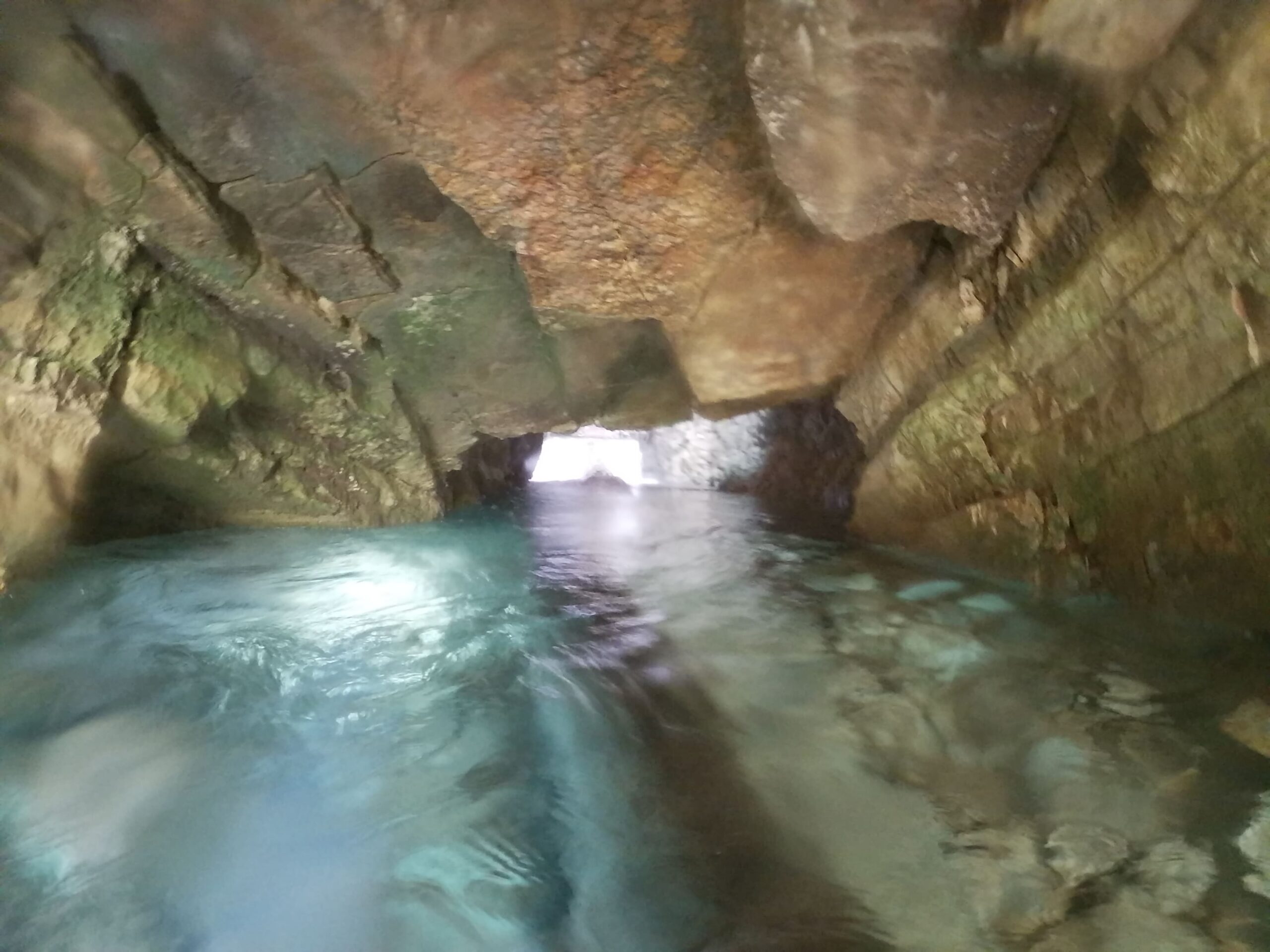 Δίπλα στη βάση του καταρράκτη υπάρχει υπόγειο ποτάμι το οποίο διέρχεται μέσα από ένα πανέμορφο σπήλαιο. Από εκεί, υδροδοτείται η περιοχή, καθώς ένα τεχνητό φράγμα παγιδέυει το νερό εντός του σπηλαίου και το οδηγεί σε σιδερένιο σωλήνα, στο παρακείμενο αντλιοστάσιο. Η είσοδος στο σπήλαιο γίνεται από ένα μικρό πέρασμα και είναι ιδιαίτερα εντυπωσιακό, καθώς ο επισκέπτης εισέρχεται σε ένα εντυπωσιακό θάλαμο ύψους 20 μ., ο οποίος φωταγωγείται από το φυσικό φώς. Κατάλληλη η πρόσβαση κυρίως τους καλοκαιρινούς μήνες καθώς έχει λιγότερη ροή, ενώ τα κρύα νερά θα ανακουφίσουν τους επισκέπτες.