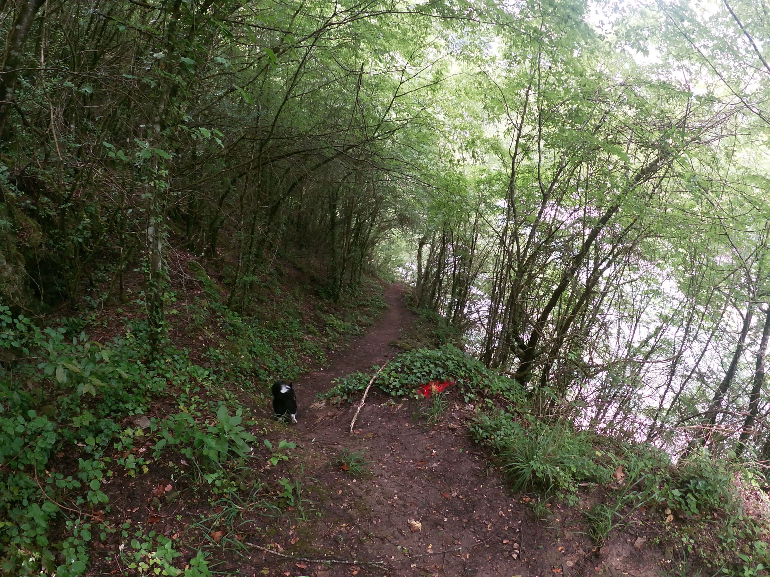 Ύστερα από επιπλέον 5 min πεζοπορίας το μονοπάτι καταλήγει στην όχθη του ποταμού Άραχθου. Όταν φτάσετε στο ποτάμι στρίψτε δεξιά και ακολουθήστε την πορεία του ποταμού για περίπου 3 min. Σε ορισμένα σημεία, συναντήσαμε και κόκκινη σήμανση, ωστόσο το μονοπάτι είναι έυκολα διακριτό.